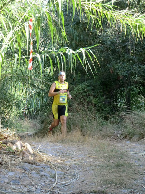 Castellón y de ahí, casi sin tiempo más que para una agradable cenita en Castellón en buena compañía y un breve aunque reparador sueño, tocaba volver a preparar los trastos de correr y enfilar rumbo a Figueroles de l'Alcalaten una de las citas clásicas del final del verano en las montañas castellonenses y que llegaba ya a su octava edición. En compañía de Ruben, con quien una vez pasados los meses de verano volvemos a compartir calendario de carreras, nos dirigimos cuando todavía era noche cerrada hacia esta localidad de la comarca de l'Alcalaten, en Castellón, donde dicho sea de paso siempre es un gustazo correr por el gran ambiente que se respira y por el excelente trato que recibimos año tras año los que por allí nos acercamos a disfrutar durante un rato de nuestra pasión por la montaña. Al llegar allí pudimos disfrutar de un buen rato en compañía de los habituales amigos y compañeros que por allí se daban cita también en esta ocasión. Sería largo de citar a todos los que por allí estaban, muchos de ellos doblando después de la carrera del día anterior por Soneja (eso para que no creáis que el único loco soy yo), pero podemos destacar al maestro Rafael Murcia, quien en en esta ocasión compartía con Adrián la representación de los Murcia, el incomparable Takito que ha jubilado ya su bañador, Campanilles, Fernando García, Berto y Ayacucho representando a los Iglesias (a recuperarse Juanjo...), una numerosa representación de mi club, Mur i Castell-TUGA que acabó en victoria de Silvia Miralles entre las chicas, Fede Arnau y muchísimos más del MiM, Jose Carreras, el eterno llorón... en fin, muchísimos conocidos y amigos entre la multitud de congregados en Figueroles. Pero en esta ocasión permitidme saludar el retorno a las carreras del amigo